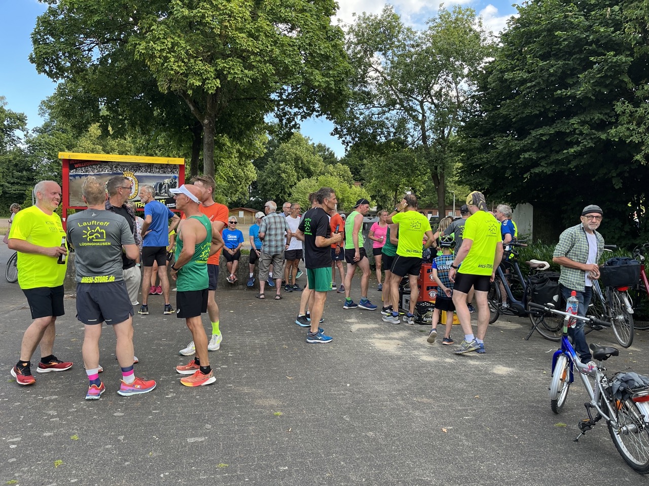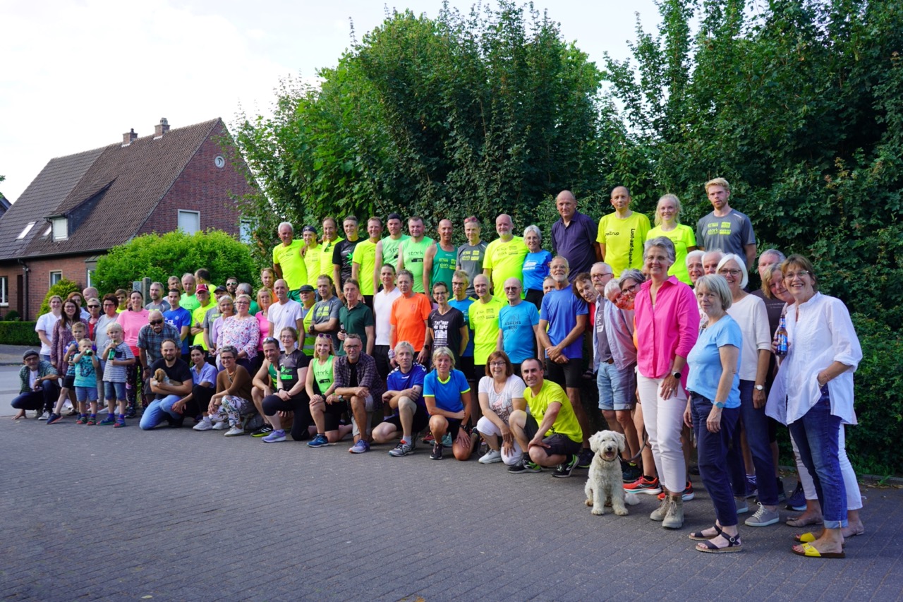 Bei bestem Sommerwetter erschienen rund 100 Läuferinnen und Läufer, Sportlerinnen und Sportler, Arbeitskollegen und Kolleginnen, Freunde und Bekannte, sowie die Familie von Karl Berndstrotmann zum, vom Lauftreff Lüdinghausen organisierten Gedächnislauf an seinem 65. Geburtstag, um sich gemeinsam von Ihm, nach seinem Tod, vor ca. 6 Wochen, zu verabschieden. Nach kurzer Ansprache durch den Lauftreff und einer Schweigeminute machte sich das Feld auf den Weg zur Grabstätte von Karl am Friedhof in Lüdinghausen zur Niederlegung von Blumen, einer Kerze und einem Foto. Nach der im Anschluss absolvierten Laufrunde trafen sich alle Anwesenden am Sportplatzgelände in Lüdinghausen, um bei einem Kaltgetränk gemeinsam über Karl zu sprechen, an Ihn zu denken und in gemeinsamer Runde Erinnerungen an Ihn zu teilen.