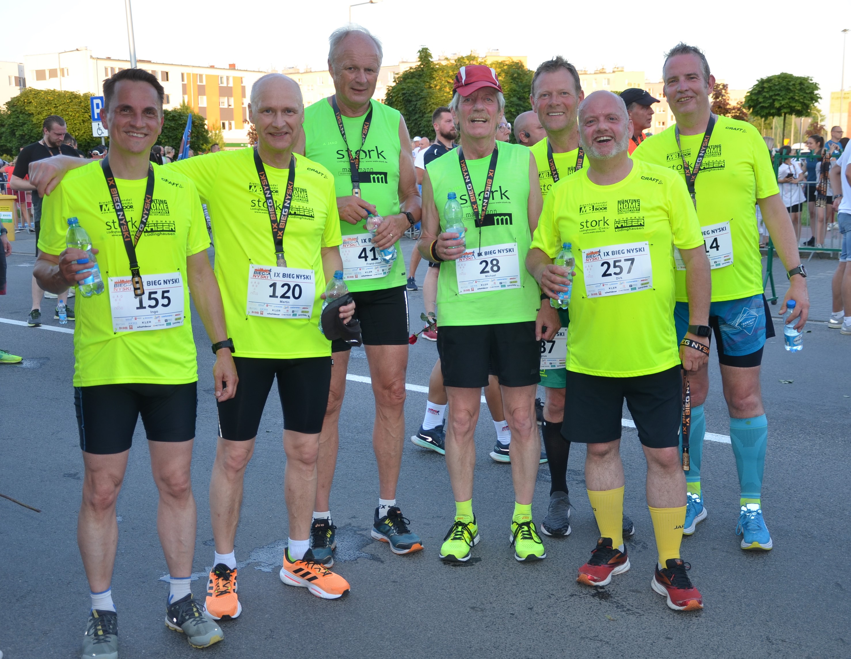 Trotz eines gemütlichen Beisammenseins am Vorabend oder einer langen Radtour am Vormittag waren die Lüdinghauser Läufer recht flott auf der Laufstrecke nterwegs. Magnus Niobbenhagen erreichte nach 44:52 Minuten als 113. das Ziel, Ingo Havermeier auf Rang 173 nach 48:05 Minuten, Michael Beer nach 53:49 Minuten auf Platz 321. Als Dritter in der Altersklasse M 70 nahm er bei der anschließenden Siegerehrung in der Halle einen Pokal entgegen. Martin Focks finishte nach 54:39 Minuten auf den 345. Rang, Franz-Josef Schütte benötigte 58:41Minuten (Rang 408), Sascha Köcher 59:36 Minuten (Rang 418) und Dirk Lagers 66:40 Minuten, Platz 496. Die Einladung für die 10. Auflage des „Bieg Nyski“ im kommenden Jahr haben die Lüdinghauser gerne angenommen. Erst aber werden Läuferinnen und Läufer aus Nysa beim Stadtfestlauf in Lüdinghausen am 16. September am Start sein.