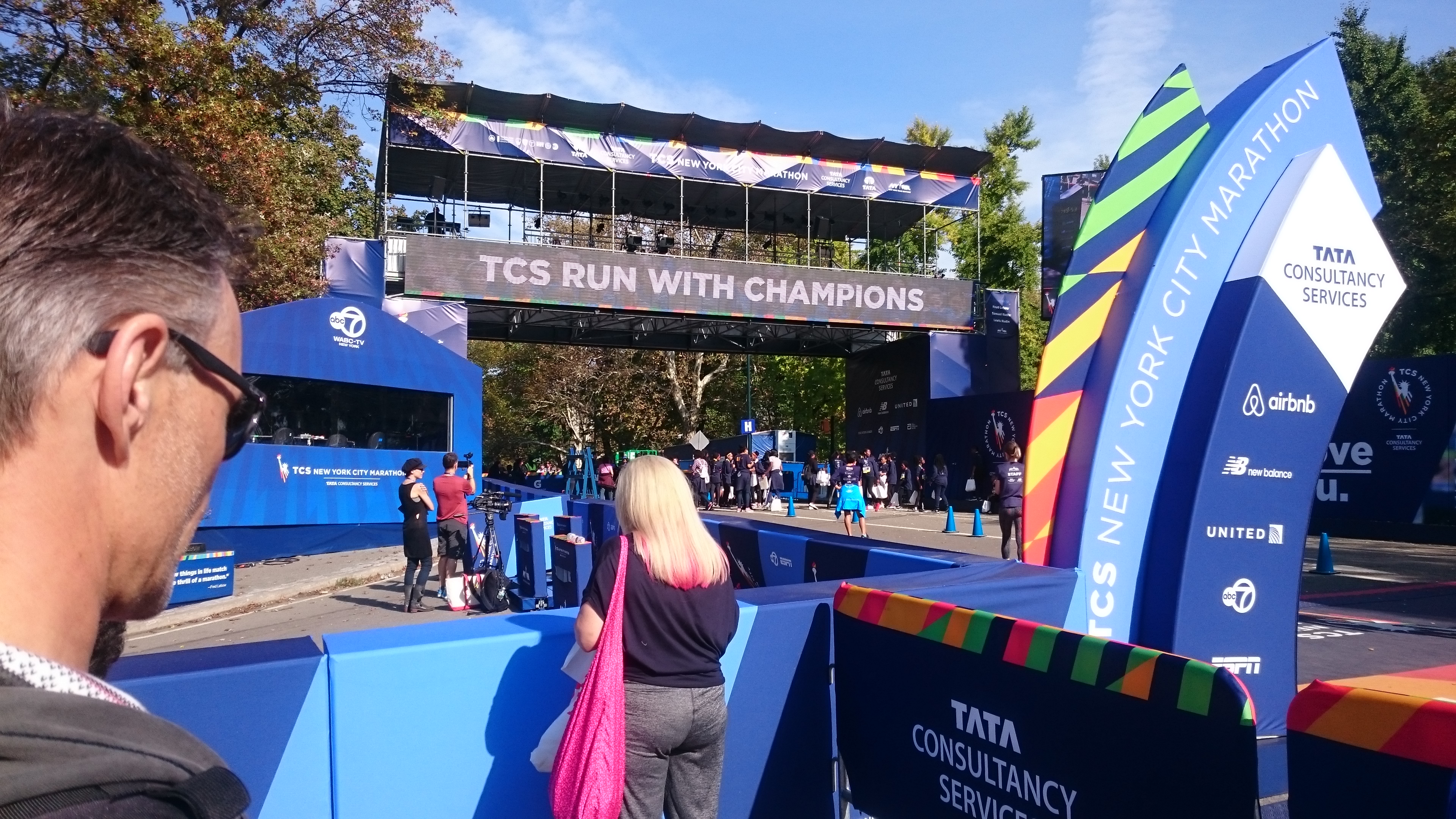 Dann endlich Sonntag: 6:00 Uhr wurden wir mit Bussen am Hotel abgeholt und zum Startbereich an die Verrazano - Bridge gebracht.