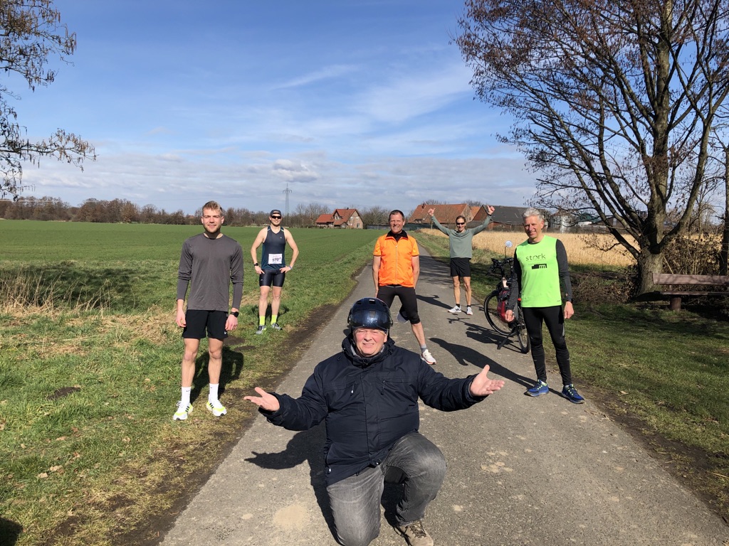 Der Dritte und abschließende Wettkampf der diesjährigen Winterlaufserie, welche durch die besonders tiefkalte und schneereiche Wetterlage sowie die Corona-Pandemie geprägten war, fand im Wertungsfenster vom 20.02 bis zum 07.03.2021 statt. Die angemeldeten Lauftreffathleten aus Seppenrade und Lüdinghausen hatten sich für das „letzte Rennen“ Samstag, den 06.03 auserkoren um gemeinsam an die Startlinie des 21,0975km Laufes auf dem bewährten 5km Rundkurs in Lüdinghausen am Schwarzen Damm zu gehen. Unter optimalen Wetterbedingungen und der Einhaltung der Corona-Schutzmaßnahmen fiel der Startschuss um 12:00 Uhr. Mit an der Startlinie als Anfeuerer war Karl Berndstrotmann mit dem Fahrrad. Ebenfalls Richard Deters war als läuferische Unterstützung an der Startlinie um für mentale und physische Unterstützung zu sorgen. Er lief in diesem Zuge selbst eine Strecke von 15km. Maskottchen „Ecki“ war auch wieder bei dem Event am Start und verpflegte die Läufer mit ausreichend Fest- und Flüssignahrung sowie motivierenden Parolen. Nach dem gemeinsamen Startschuss rannten die vier Athleten den Rundkurs 4-mal inklusive einer kleinen Extraschleife. Andreas Koch und Linus Nibbenhagen finishten in einer Zielzeit von ~ 1:28:30 h. Andreas übernahm dabei die Rolle des Zugpferdes für Linus, der in einer PB finishte. Magnus Nibbenhagen, welcher erst den 2. HM unter Wettkampfbedingungen lief, erreichte die virtuelle Ziellinie nach 1:35:04 h und verbesserte seine alte Bestzeit auf dieser Strecke um mehr als vier Minuten. Gefolgt von Julian Wienhölter, welcher nach 1:37:48 h die HM-Distanz in ebenfalls einer explodierenden Bestzeit von -5 Minuten verbesserte. Christoph Schlütermann schaffte es aufgrund terminlicher Einspannungen nicht mittags an den Start zu gehen. Er holte seinen persönlichen HM gegen Abend nach und lief ebenfalls Teile der Wettkampfstrecke am Schwarzen Damm. Seine Zielzeit war die 1:45:45 h. Alles Ergebnisse die sich sehen lassen und den Lauftreff Lüdinghausen in der Gesamtwertung sehr gut dastehen lassen. In der Teamwertung, bestehend aus 3 Läufern, entweder über die Einzelläufe oder die Serie, schnitten die Runner mehr als überdurchschnittlich gut ab. Alle Ergebnisse sind unter dem folgenden Link zu finden. 47. Sparkassen-Winterlaufserie light (virtuell), 23.01.2021-07.03.2021 : : my.race|result Die Veranstaltung vom OSC Hamm war bestens organisiert. Wir freuen uns schon auf hoffentlich „normale“ Wettkampfbedingungen im Jahr 2022. Nächster Wettkampf: Mai, 2021, Wings for Life – World App run. Informationen folgen.