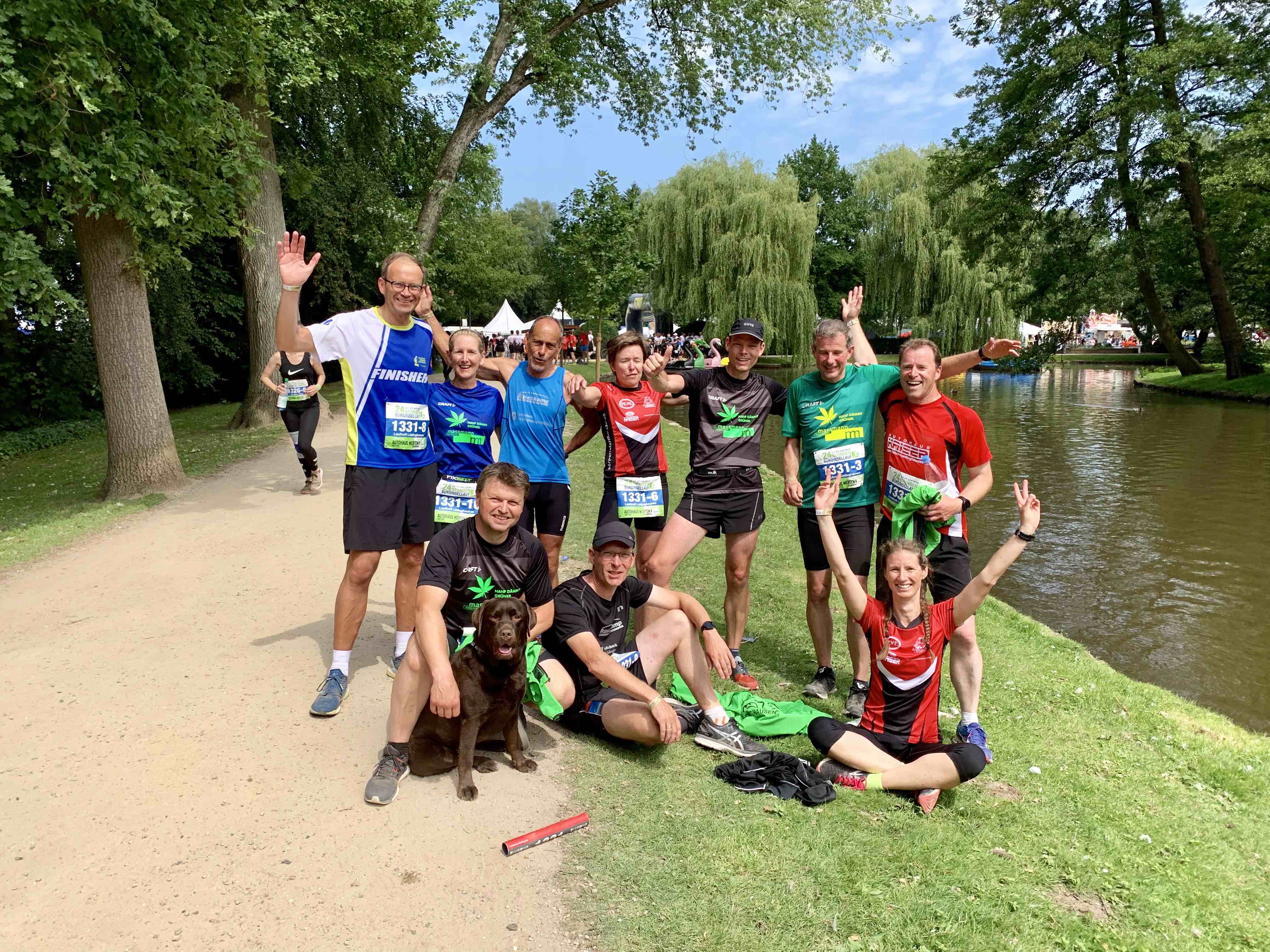 Am 23. Juni 2019 kamen die Lauftreffathleten von einem einmaligen Sportevent aus Delmenhorst erfolgreich zurück. Der erfahrene Ultraläufer Karl Berndstrotmann hatte die Idee, beim legendären Burginsellauf in Delmenhorst mit einer Mix-Staffel erstmalig für den heimischen Lauftreff in den Wettbewerb zu gehen. Beim 24 Stundenlauf gab es "einfache" Regeln für den Staffelwettbewerb: Es muss 24 Stunden durchgelaufen werden. Ein Läufer des Teams muss demnach immer auf der Strecke sein. Diese ist ein exakt 1205-Meter-Rundkurs um die herrliche Grachteninsel mitten in Delmenhorst. Am Ende zählte für die Wertung die insgesamt erlaufene Gesamtstrecke. Auf dem Veranstaltungsgelände konnten die Teams ihr Zelt aufbauen, um sich für die jeweils kurzen Pausenzeiten - während ein Teammitglied im Rennen war - auszuruhen. "Für solche Bedingungen kann man eigentlich keinen Trainingsplan erfinden", meinte Jan Stork. Eine 1200-Meterrunde ist für die Langstreckenexperten des Lauftreffs sicher kein Problem. Marathonis sind es gewohnt, eher etwas langsamer dafür aber ausdauernd zu laufen um Kräfte richtig einzuteilen. Hier kam es darauf an, fast im Sprintmodus über 1200 m zu laufen, um dann nach der Staffelübergabe in gut 5 Minuten wieder ran zu müssen. Der Lauftreff teilte sich die Aufgabe so ein, dass immer zwei Läufer sich für eine Stunde abwechselten. So gab es die Chance insbesondere in der Nachtschicht auf längere Erholungsphasen. Selbst die Veranstalter kannten keine optimale Renntaktik und somit musste jedes Team seinen idealen Weg finden. Dass die Lüdinghauser so falsch nicht gelegen haben können, zeigt das herausragende Ergebnis des Teams. Insgesamt schafften die Läuferinnen und Läufer in 24 Stunden eine Gesamtstrecke von 304,446 Kilometer. 252 mal musste dafür der Staffelstab übergeben werden. In der Wertung der Mixed Teams bedeutete das auf Anhieb einen hervorragenden 6. Platz von 36 Mixed-Teams. In der Gesamtwertung erreichten die Lüdinghauser den 9. Platz von 52 teils hochkarätig besetzten Teams, die aus jeweils bis zu 10 Läufer*innen bestanden. Im Durchschnitt hat jedes Teammitglied über 30 km bewältigt. "Ein Intervalltraining der besonderen Art" meinte Petra Göldner, "man kann besser 30 km am Stück laufen, als ständig im Wechsel Vollgas geben zu müssen." Aber genau das hat diese Herausforderung für alle so spannend gemacht. "Jeder hat sich voll für das ganze Team eingesetzt und trotz mancher Zipperlein immer alles gegeben, was möglich war. Wir kommen hier bestimmt noch einmal wieder. Die Atmosphäre und Organisation war unglaublich gut" urteilte Teamchef Karl Berndstrotmann.
