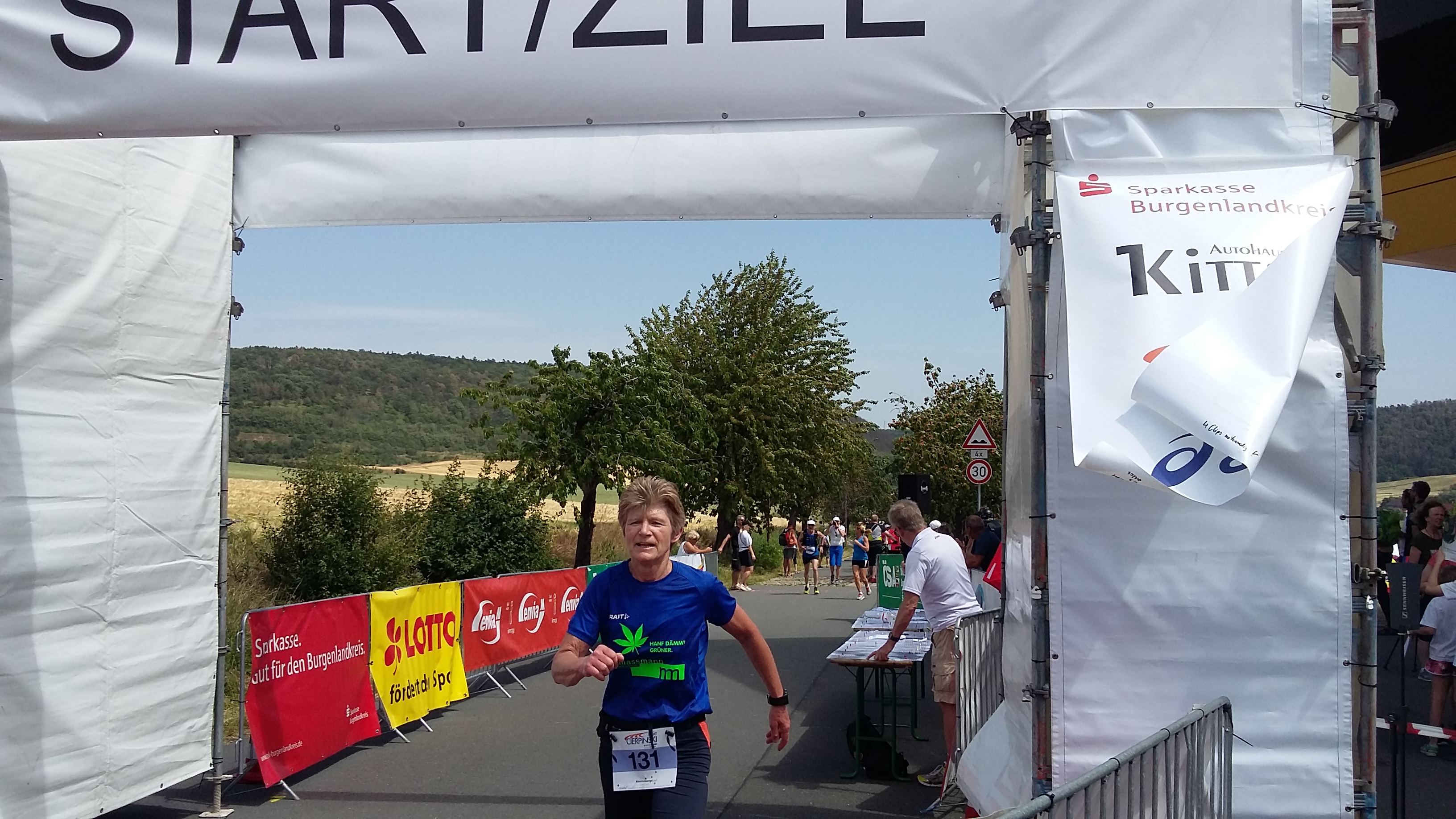 Beim „Himmelswegelaufmarathon“ in Naumburg an der Saale war Silvia Rusche vom Lauftreff Lüdinghausen am Wochenende erfolgreich unterwegs. Der Start erfolgte in Goseck am Sonnenoberservatorium. Bereits um 9.00 Uhr herrschten dort 28 Grad. Das Ziel in Nebra, wo die Himmelsscheibe gefunden wurde, erreichte Rusche, zweitälteste Starterin im Feld, nach 4:24 Stunden das Ziel. Damit gewann sie die AK 55 und belegte Rang vier bei den Frauen. Selbst die schnellste Frau benötigte bei dem warmen Wetter mehr als vier Stunden. Die wunderschöne Strecke führte fast ausschließlich über Fuß-und Radwege vorbei an Schlössern, Weinbergen und oft an der Unstrut entlang.  Auf der Strecke gab es kaum Schatten, nur ab und zu mal ein Bäumchen, so dass die schöne Gegend bei den heißen Temperaturen vom Starterfeld kaum genossen werden konnte. Die Athleten  wurden aber gut versorgt und die Helfer munterten die Teilnehmer immer wieder auf. Insgesamt waren rund 2000 Teilnehmer auf der Strecke, denn es wurden auch ein Halbmarathon und ein 10 km Lauf angeboten. Auch Walker und Radfahrer wurden auf die Strecke geschickt. „Es war eine rundum gelungene Veranstaltung, die viel Spaß gemacht hat“, sagte Silvia Rusche nach dem Lauf.