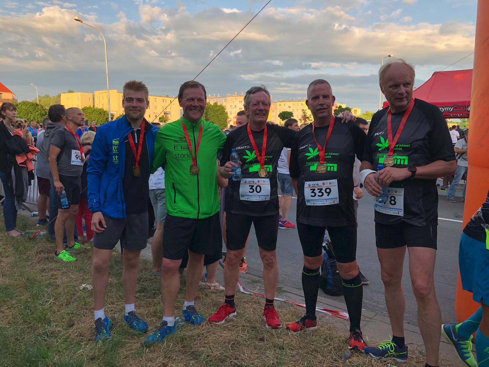Zwar erstmals ohne Pokal, aber dafür mit vielen neuen Eindrücken kehrte ein Team des Lauftreffs Lüdinghausen vom „7. Bieg Nyski“, dem Stadtlauf in der polnischen Partnerstadt Nysa, am Montagabend zurück. Vor dem Start der fast 900 Athleten (unter anderem aus Kenia, Mexiko, England, Tschechien und Deutschland), die am Samstagabend durch laute Böllerschüsse auf die Zehn-Kilometer-Strecke geschickt wurden, begrüßte der Stadionsprecher das Lüdinghauser Team. War es tagsüber recht frisch, kam zum Start die Sonne hervor und trieb die Temperaturen in die Höhe. Viele Zuschauer säumten die flache Strecke. Die Siegerzeit von 30:20 Minuten, die nicht etwa ein Kenianer, sondern ein polnischer Läufer vorlegte, konnte sich sehen lassen. Bester Lüdinghauser (und deutscher) Läufer war Linus Nibbenhagen, der nach 40:52 Minuten auf Platz 90 das Ziel erreichte. Sein Vater Magnus Nibbenhagen finishte nach 45:46 Minuten auf Platz 231. Mit der Zeit von 51:41 Minuten landete Sascha Köcher auf Rang 413, Franz-Josef Schütte nach 54:46 Minuten auf dem 538. und Michael Beer nach 56:55 Minuten auf dem 607. Platz. Viel Applaus der Zuschauer am Ziel und eine schwere Medaille waren der verdiente Lohn.